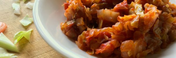 Cabbage does not have to be boring or bland with this tasty recipe. Look for cans of stewed tomatoes marked “No Salt Added” or “Low Sodium.”